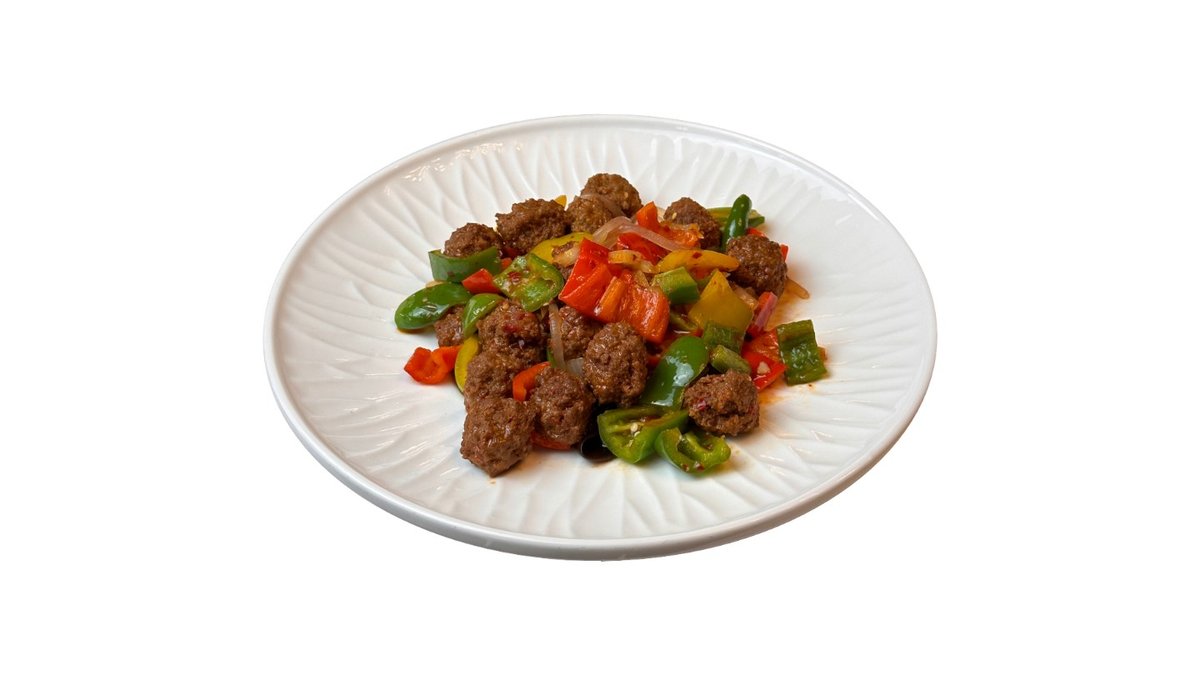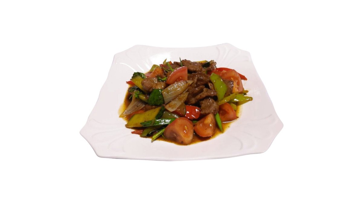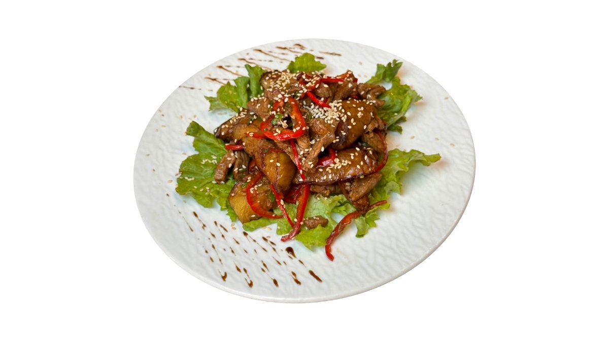 Телятина, полугорький перец, джусай, кунжут, специи