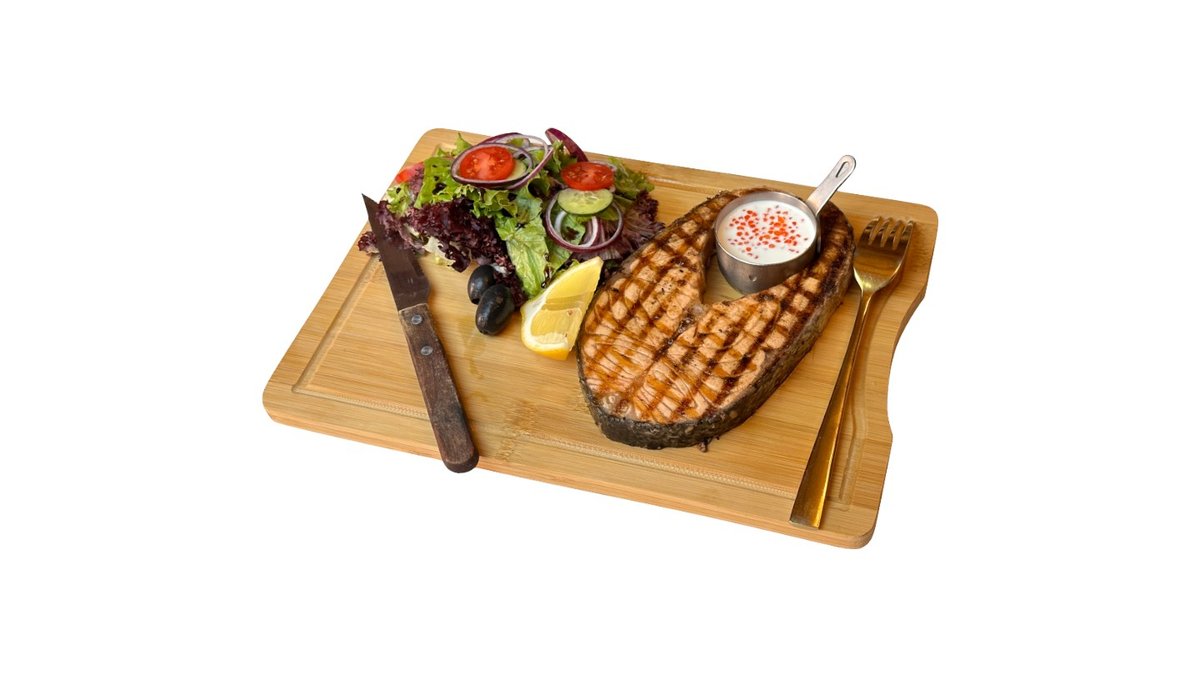 Форель, овощи, икорный соус, сливочное масло