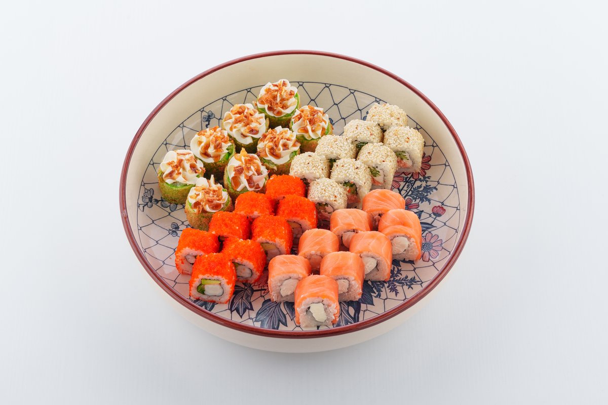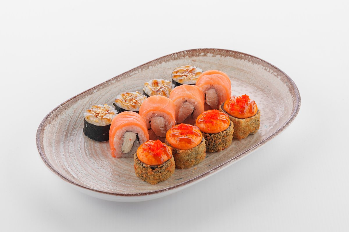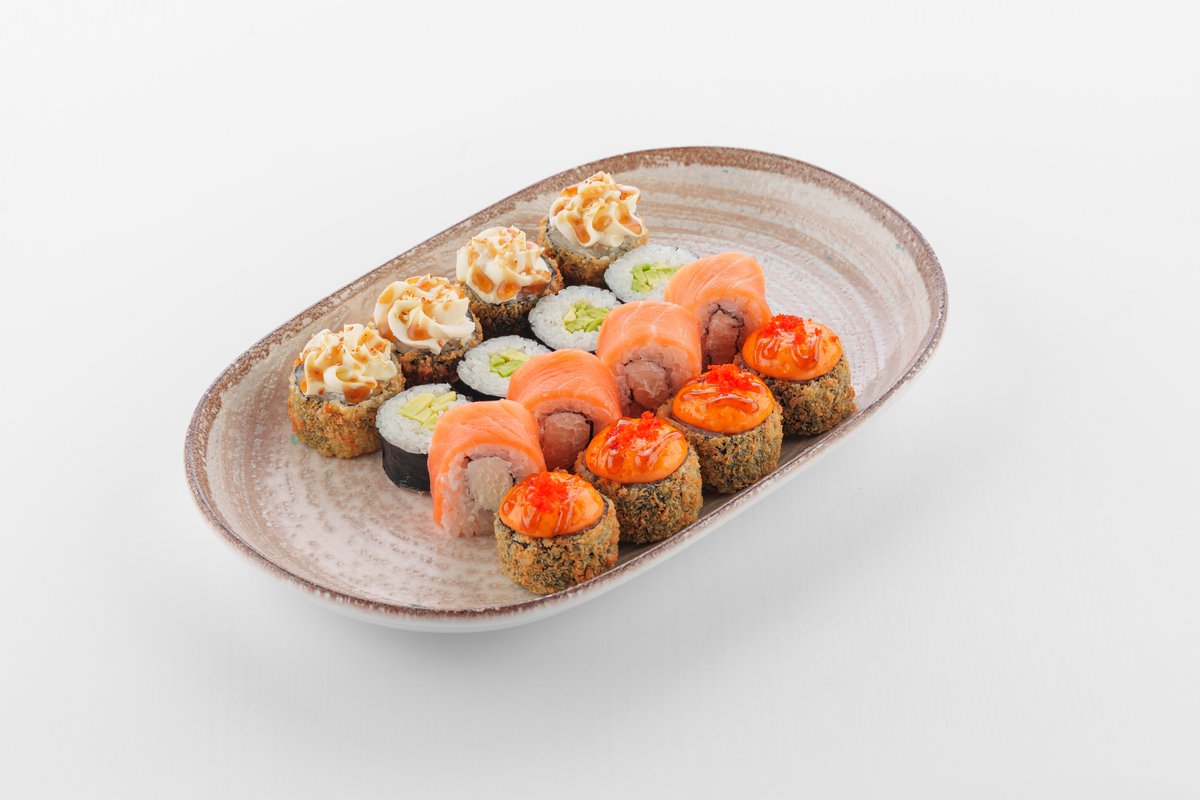 Сет Craft 1порция (32 шт теплых ролл), пицца 4 сезона 1шт (30см), пицца барбекю 1шт (30см), Крылышки 2п ( 14шт) , яннем чикен 2 порции, фри 2 порции, стрипсы 2 порции, кола 3л ( на 6х и более персон)