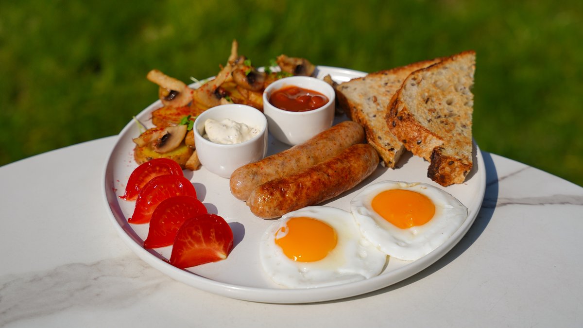 Английский завтрак с красной фасолью и колбасками