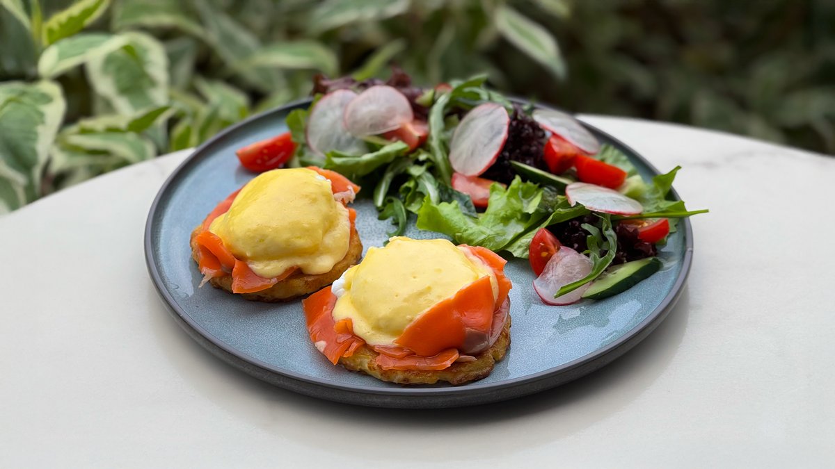 Бриошь с пашотом и лососем