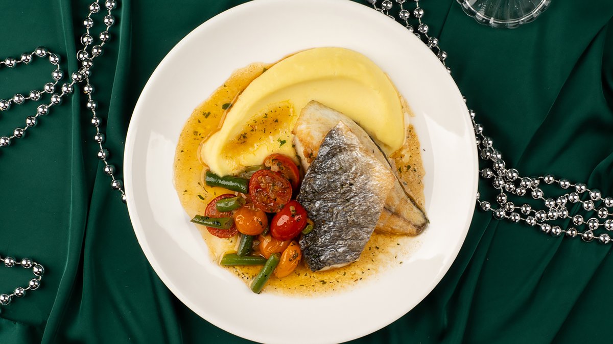 на деревенском хлебе со льном, спелым авокадо, малосольным лососем, 2-мя яйцами пашот и голландским соусом, подаётся с миксом зелени