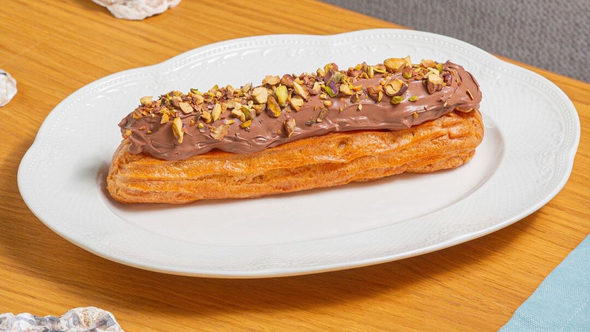 Big эклер с топленым кремом, шоколадом и орехами