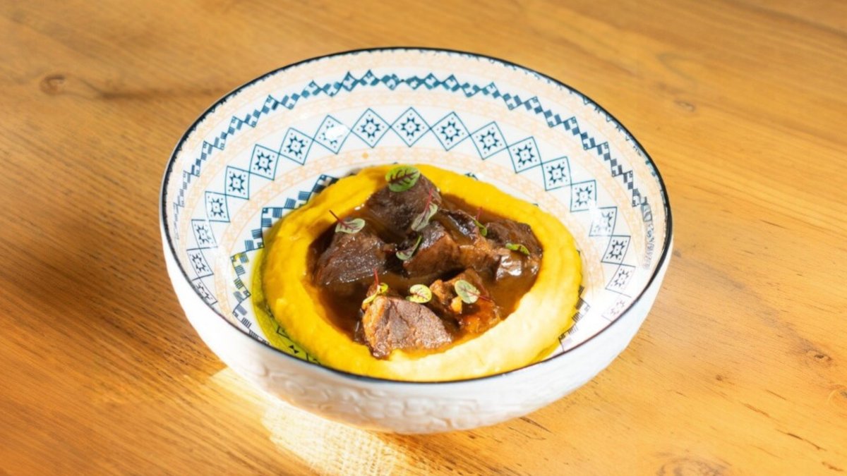 Телячьи щечки с пюре из батата