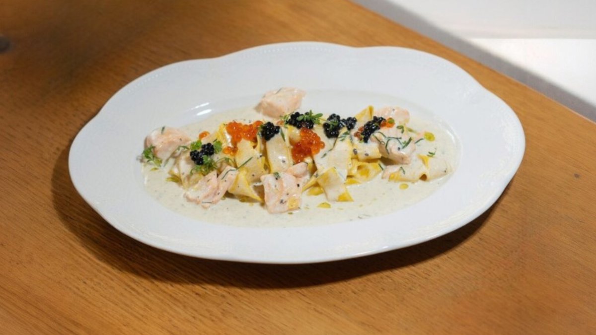 Брускетта с копченой форелью и страчателлой