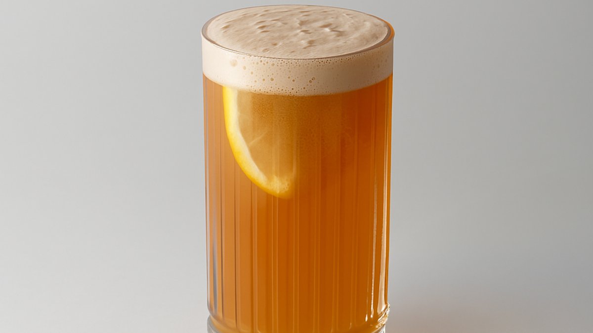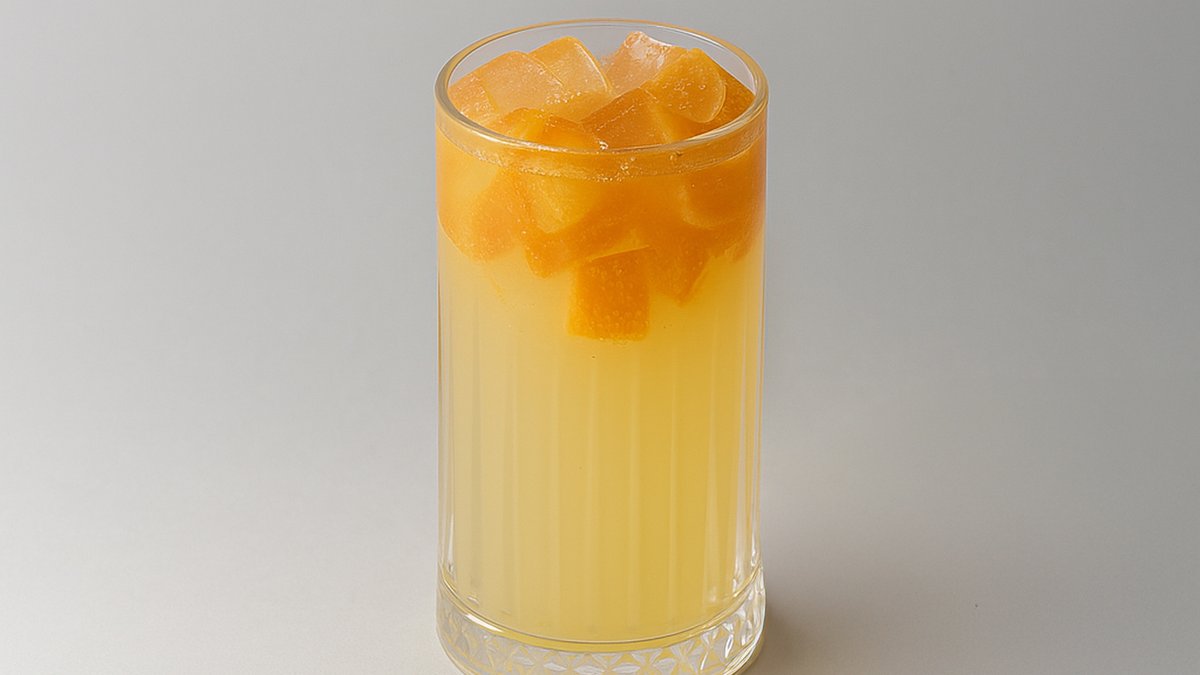 Слайс манго и имбиря, пюре маракуи, сироп имбиря, лимонный фреш и газировка