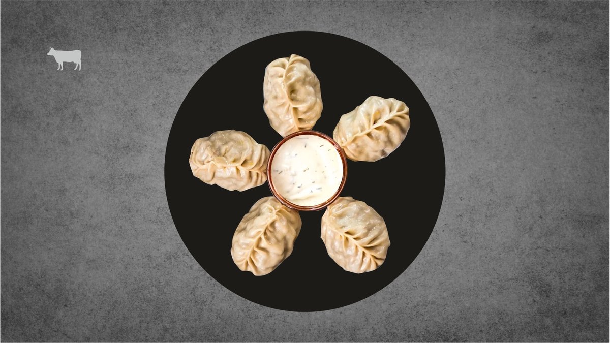 Сочные манты с мясом и тыквой, подаются с соусом