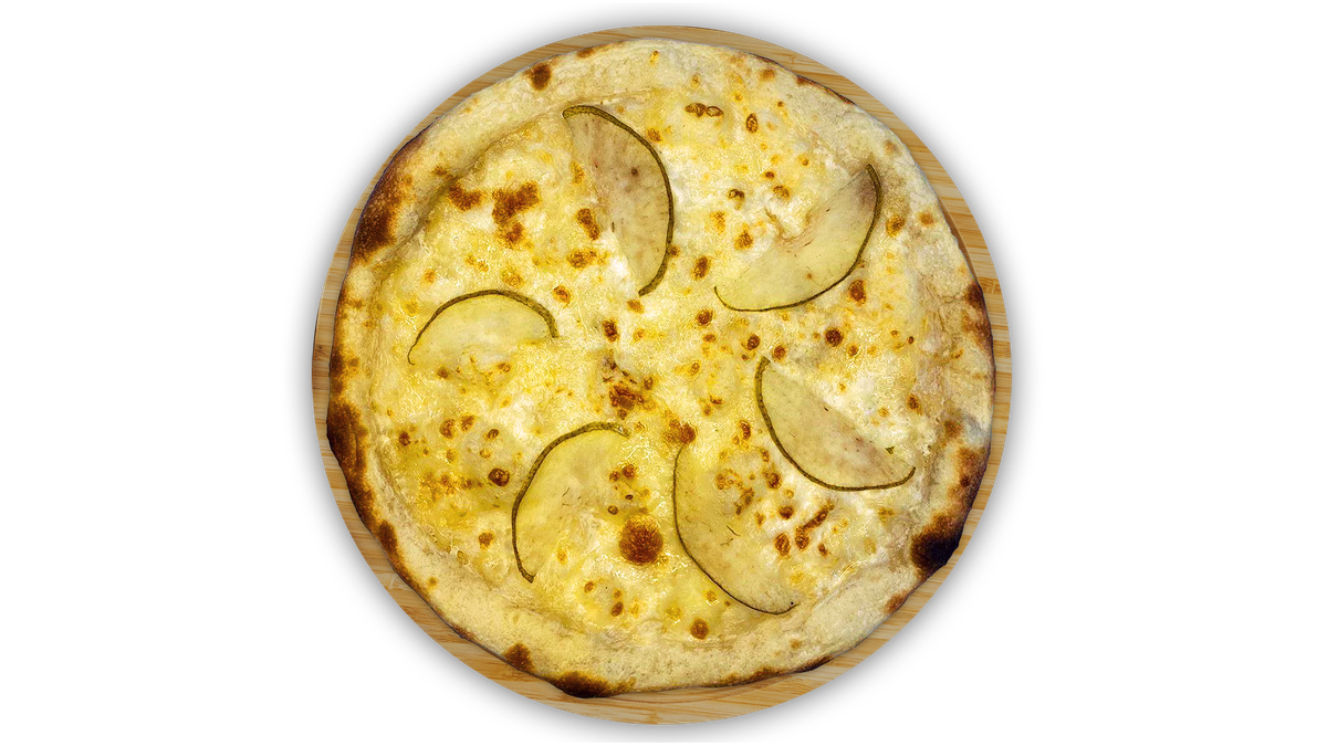 Тесто , соус бешамель , моцарелла , груша , дор блю , мед