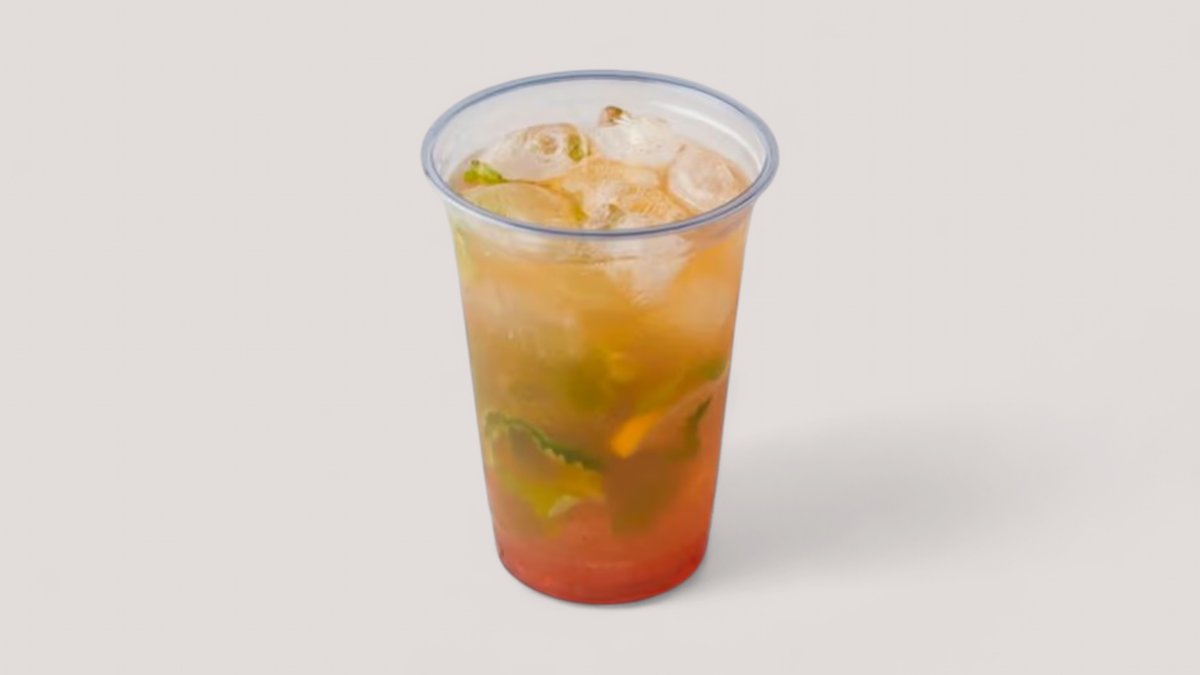 апельсин, лимон, сироп арбуз-дыня, лёд, мята, газ.вода