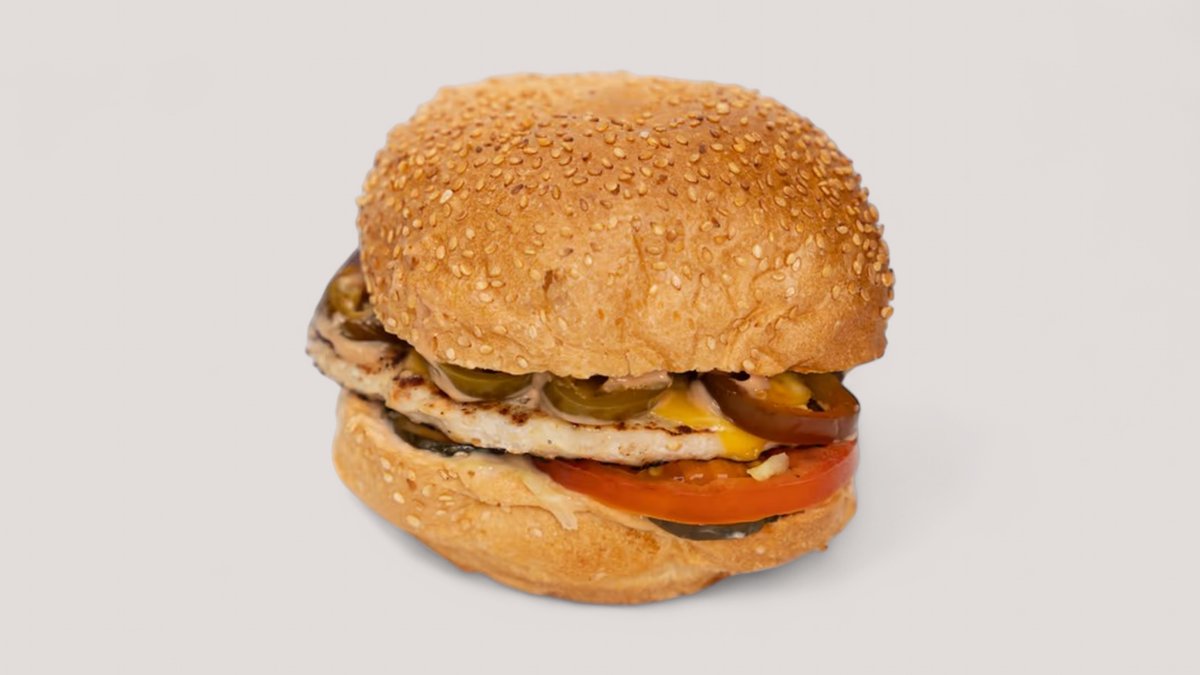"Қызу"- горячий, энергичный- бургер с огонькой (Бірегей бәліш, балқып тұрған ірімшік, шырынды әрі қытырлақ "Айсберг" салаты, нәзік тауық котлеті, дәмді тұздалған қияр мен шырынды қызанақтар, ащы халопеньо бұрышы, ерекше ащы соуспен)