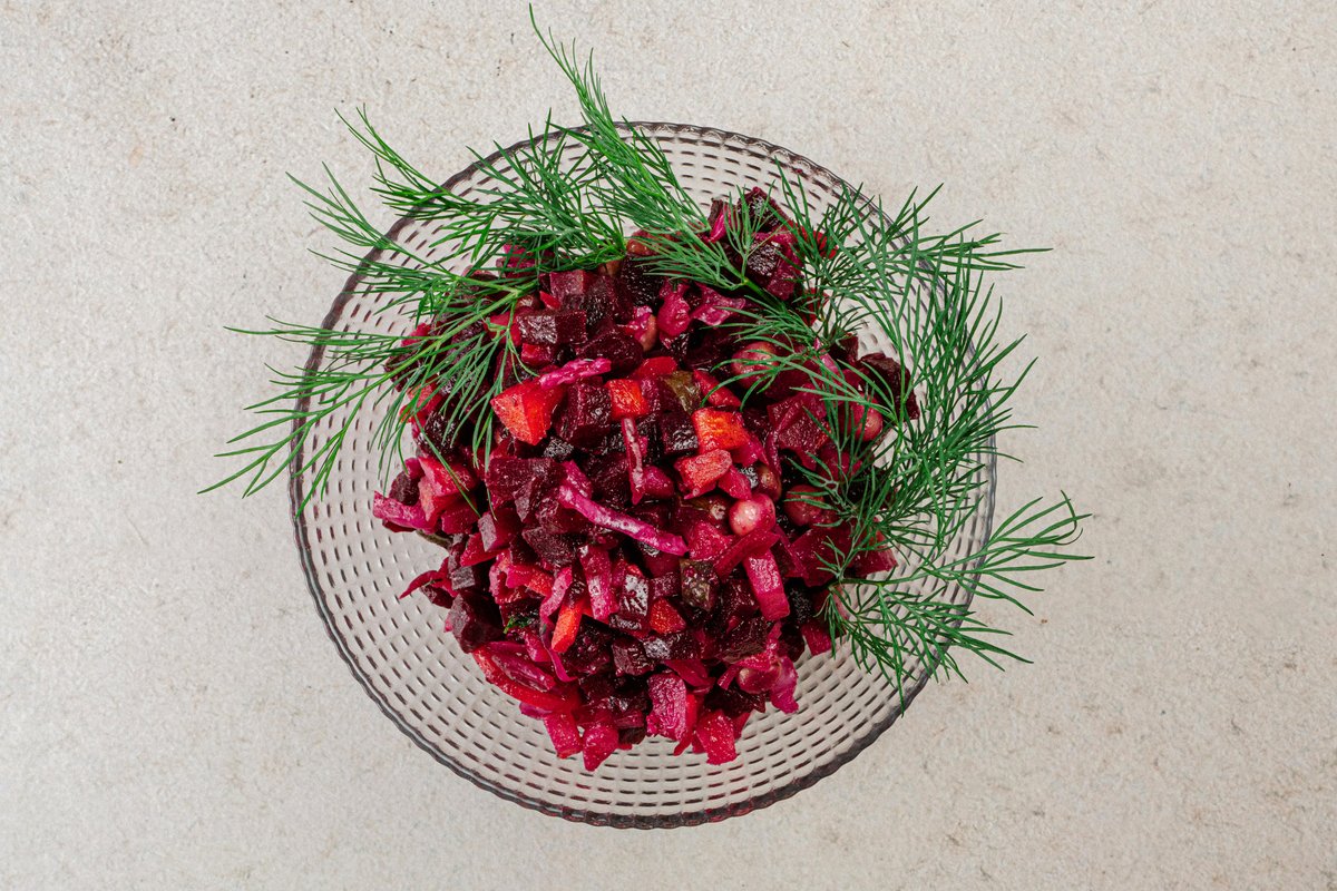 Морковь, свекла, горошек, квашенная капуста, укроп, марин-ые огурцы