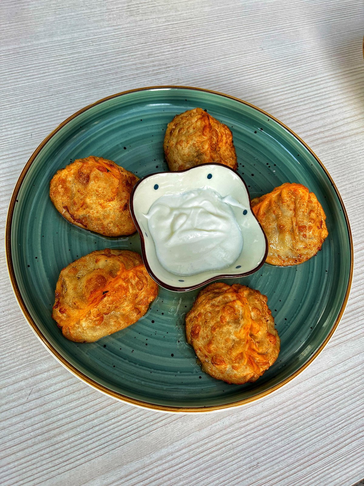 обжаренные манты с рубленным говядиной и луком
