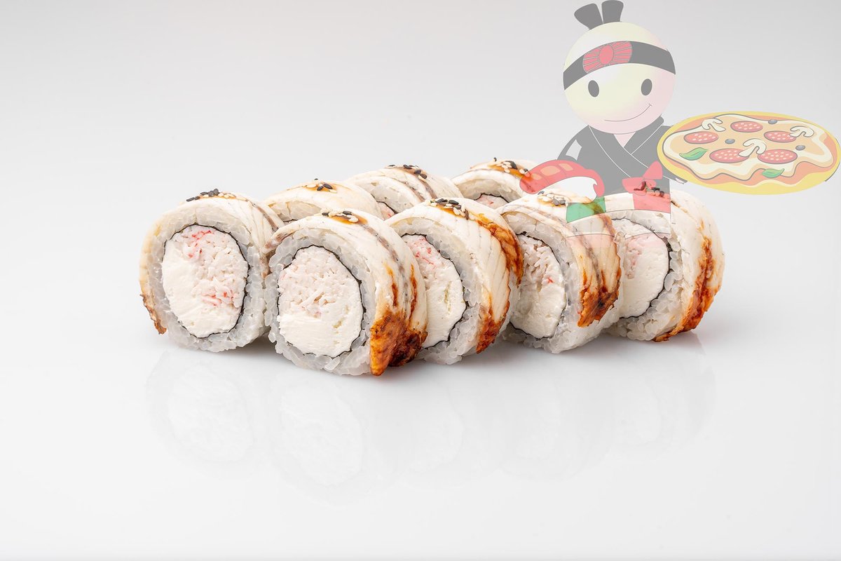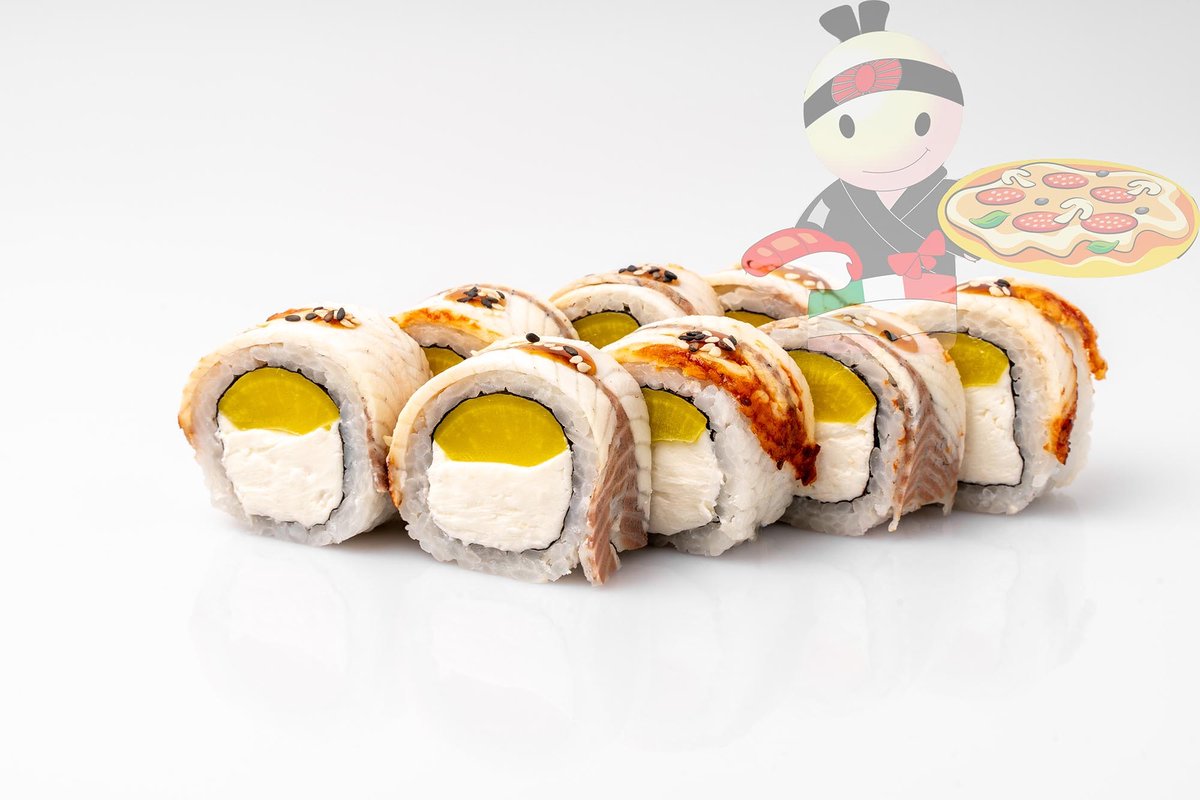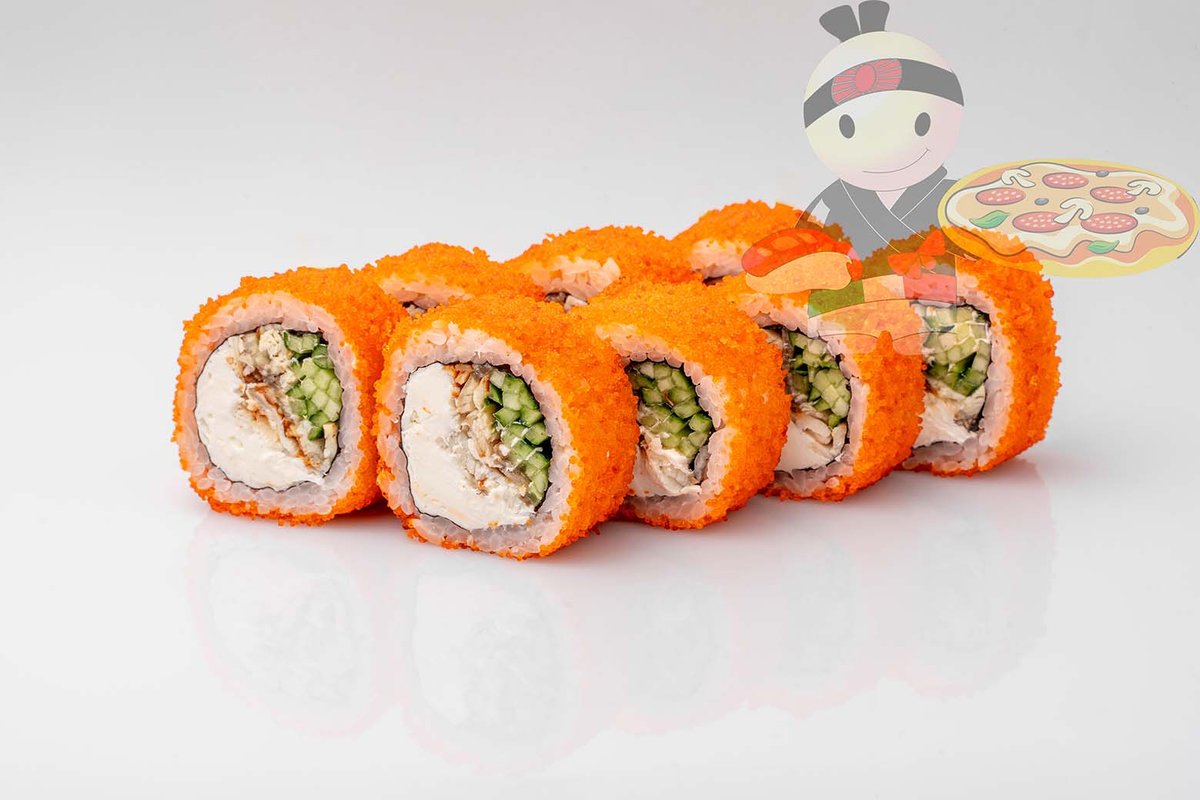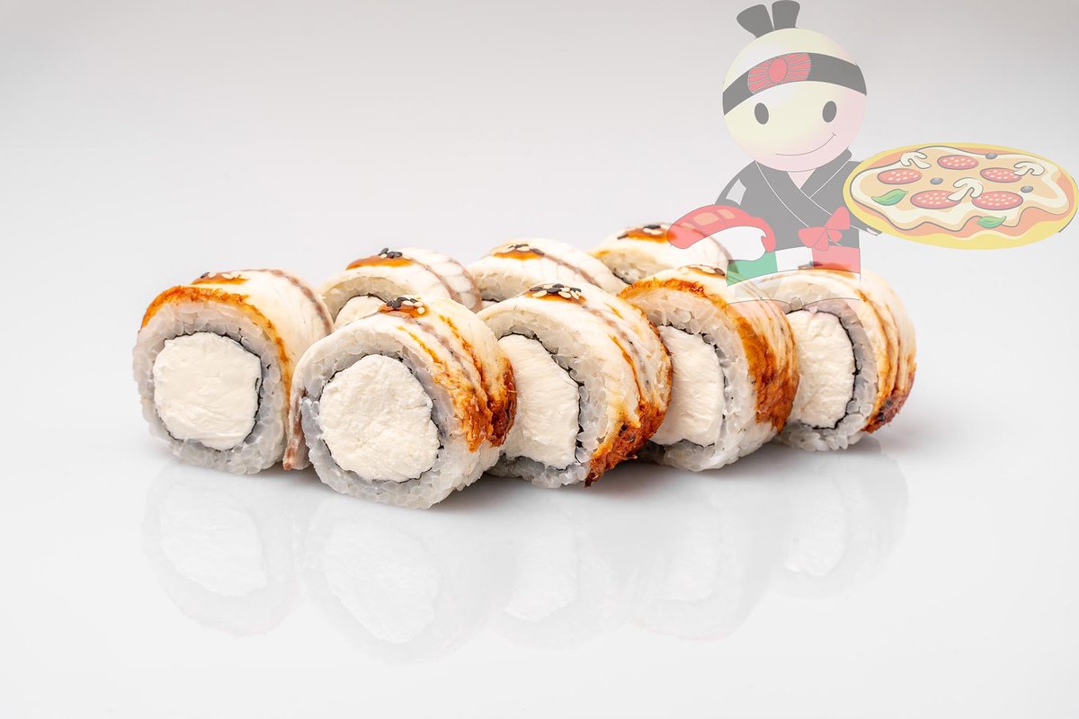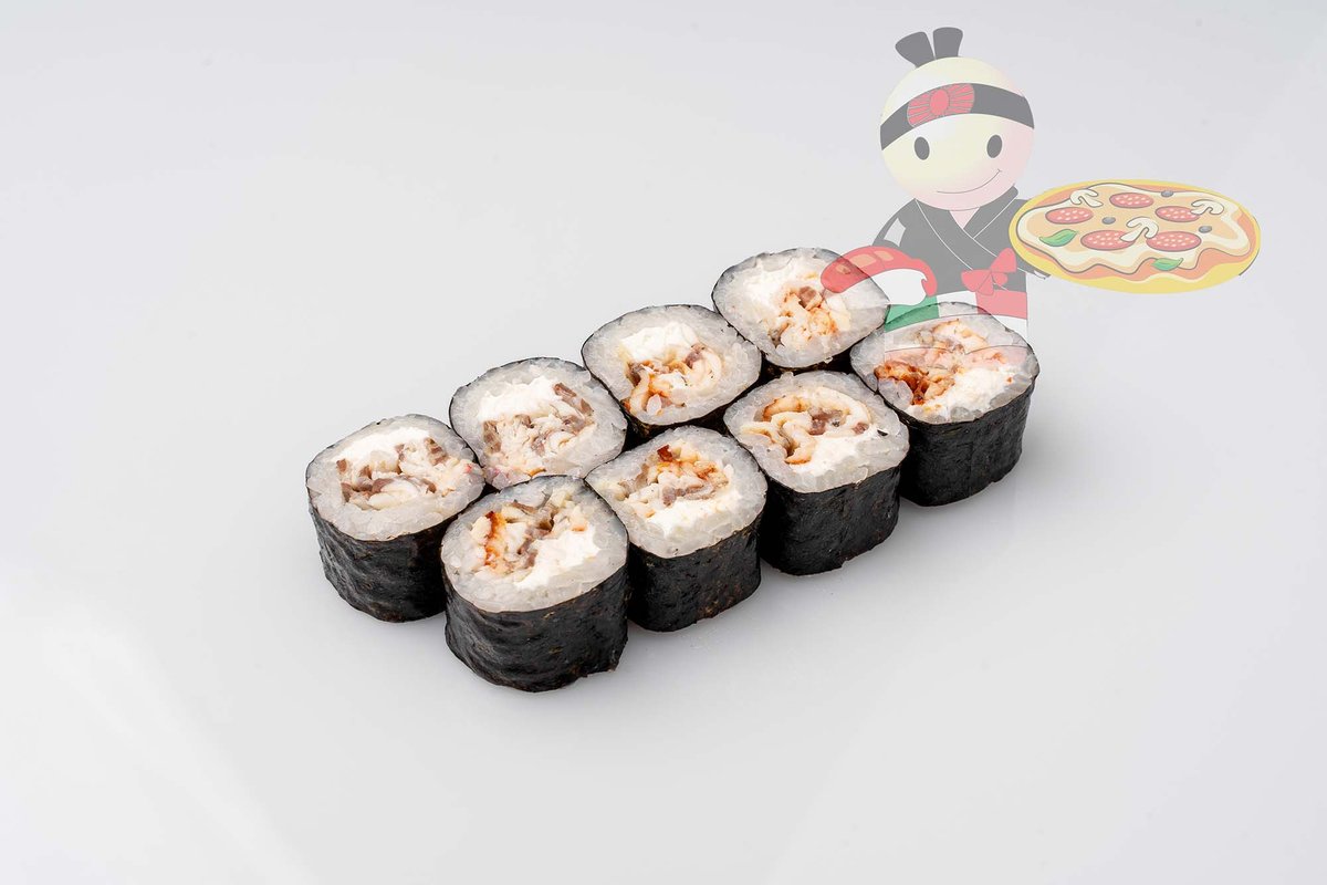 Рис, нори, сливочный сыр, угорь.