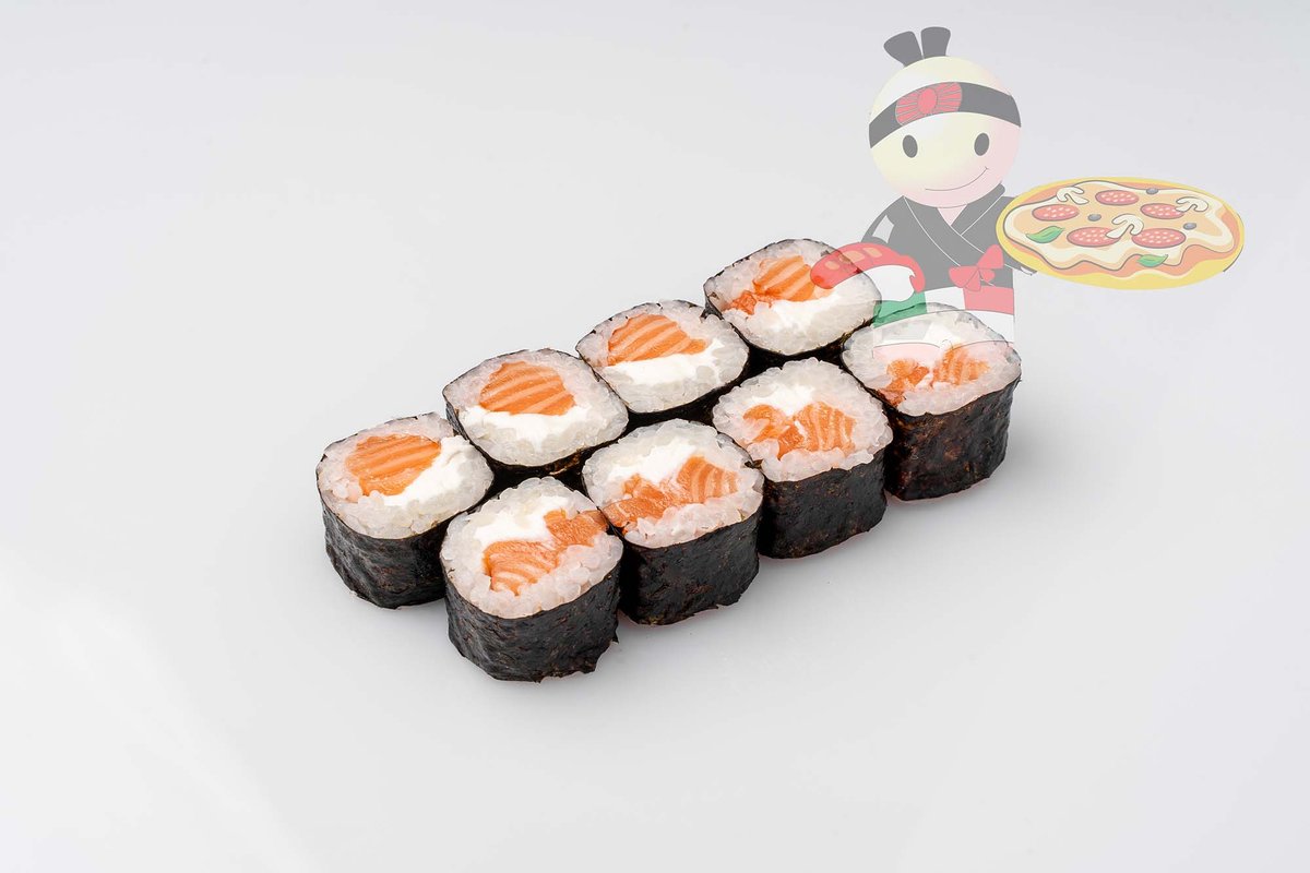 Рис, нори, сливочный сыр,лосось.