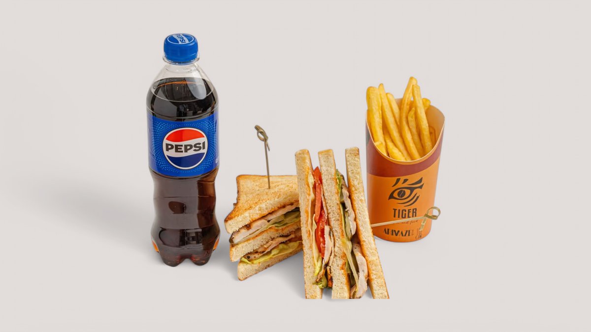 клаб сендвич + фри + соус кетчуп + pepsi 500 мл