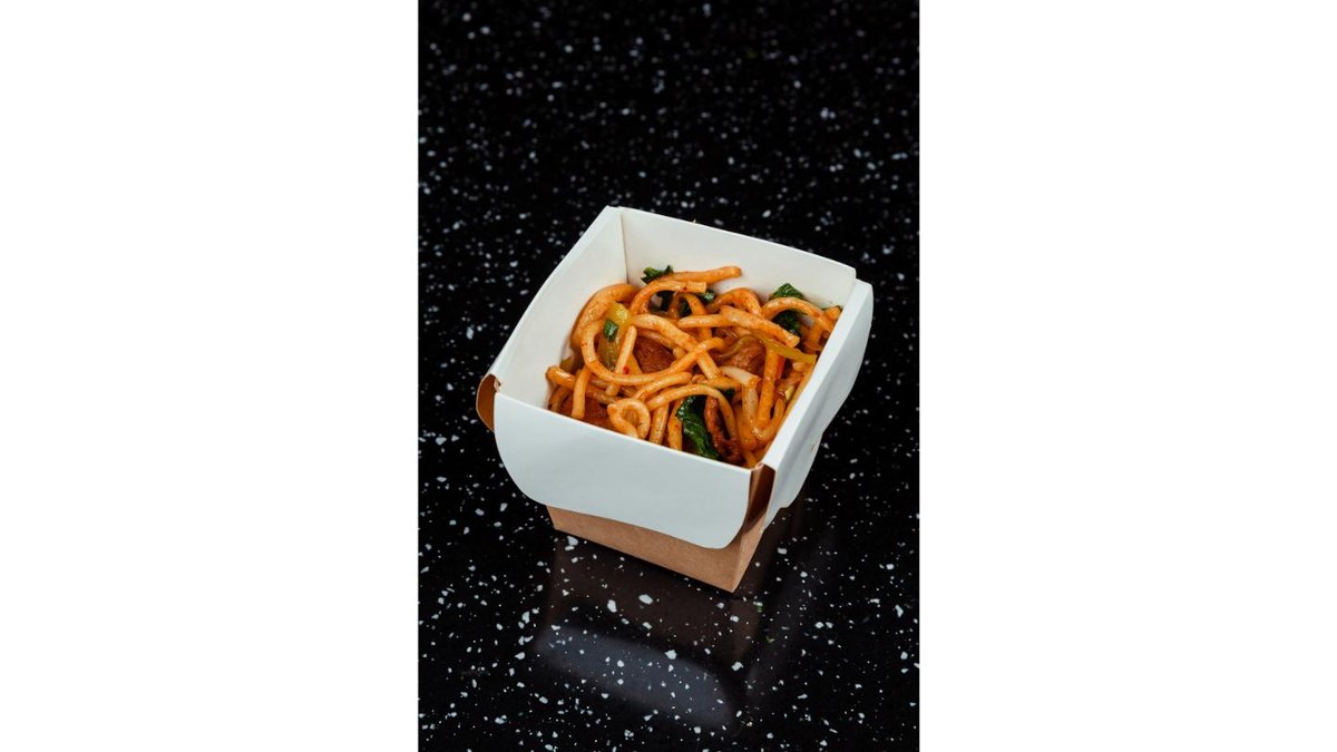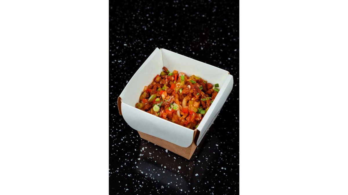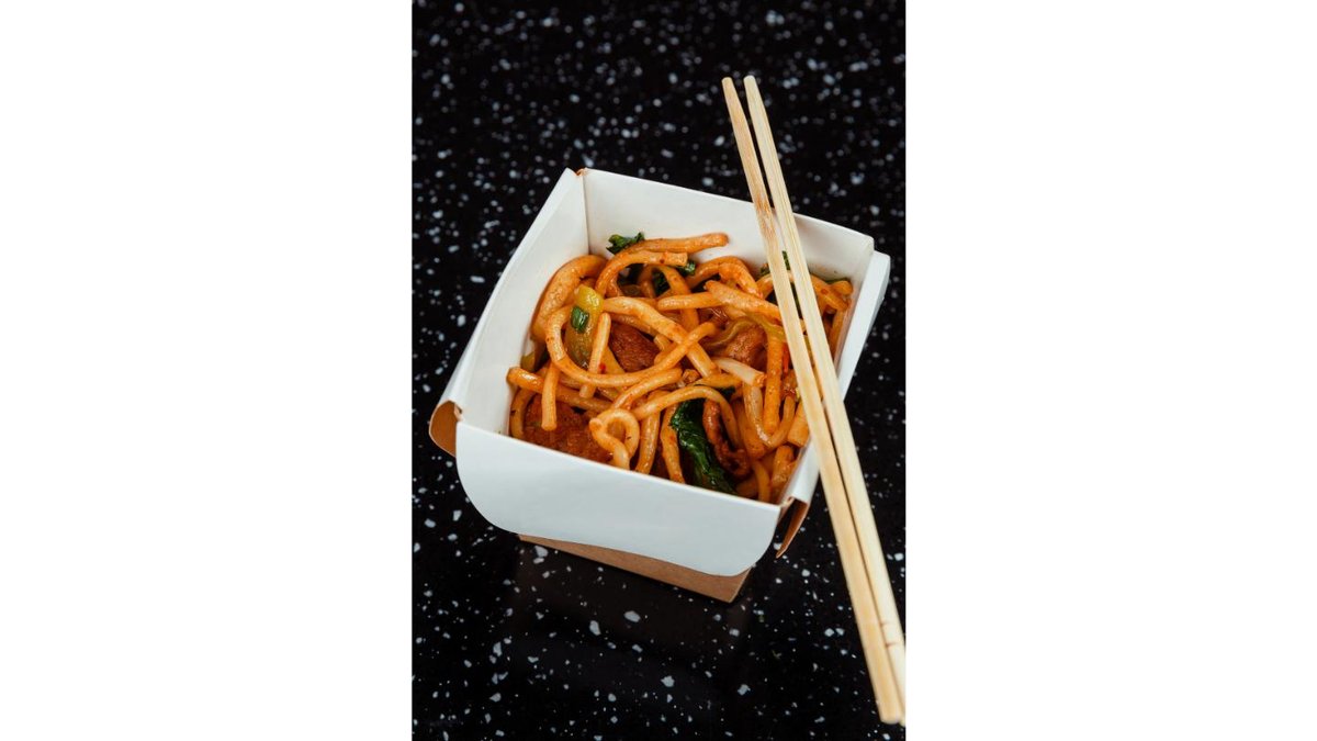 Фирменная лапша, говядина, лук, морковь, чеснок, помидоры, соевый соус, зелень ( кинза, лук зеленый).