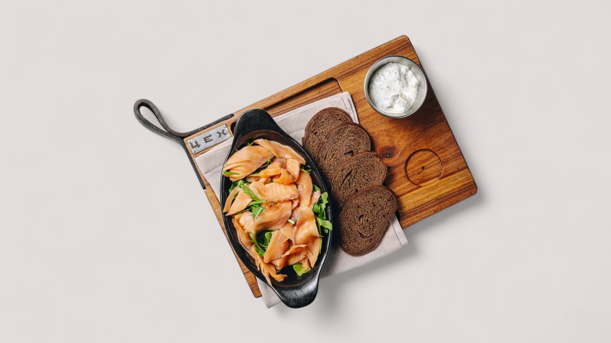 Нежная семга с хрустящими бородинскими чипсами и соусом тар-тар