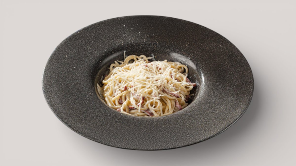Паста с говяжьим беконом, сливочным соусом и пармезаном
