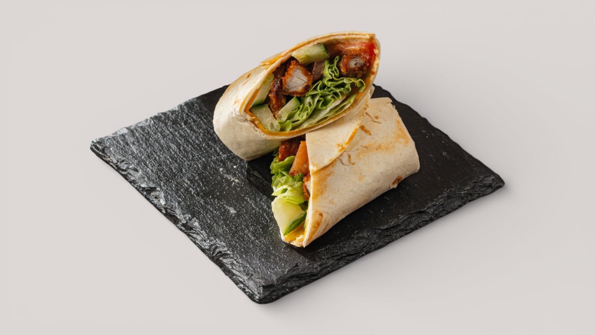 Хрустящая курица, свежие овощи и фирменный соус в обжаренной тортильей
