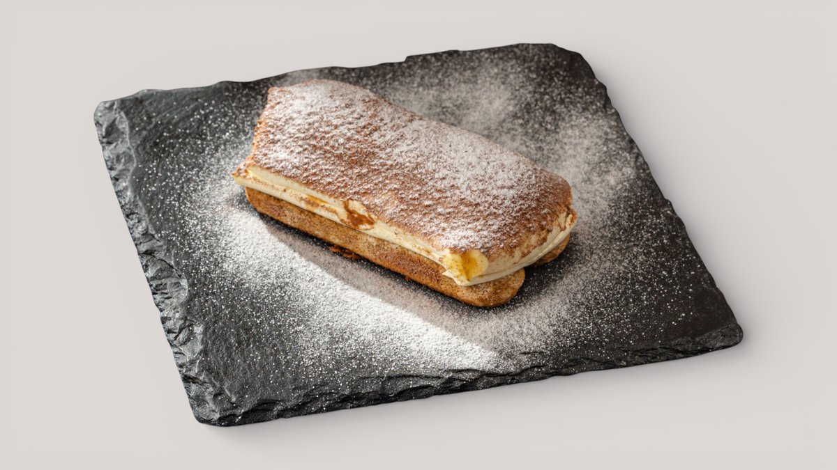 Телятина в классическом соусе Демиглясс с грибами, подается с картофелем фри