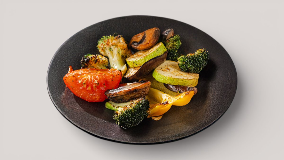 Цукини, баклажаны, болгарский перец, томат и шампиньоны, обжаренные на гриле