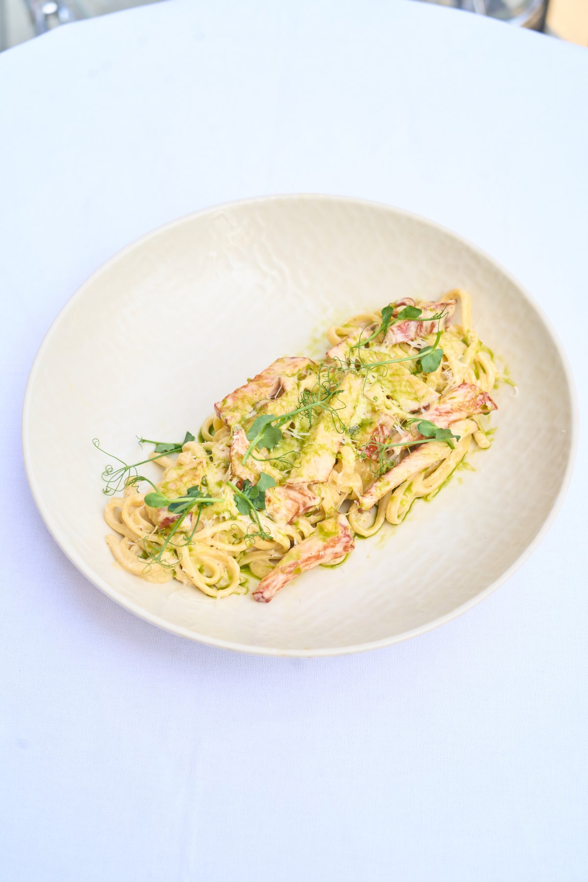 (паста лингвини, индейка, сливки, желток, пармезан, чеснок)