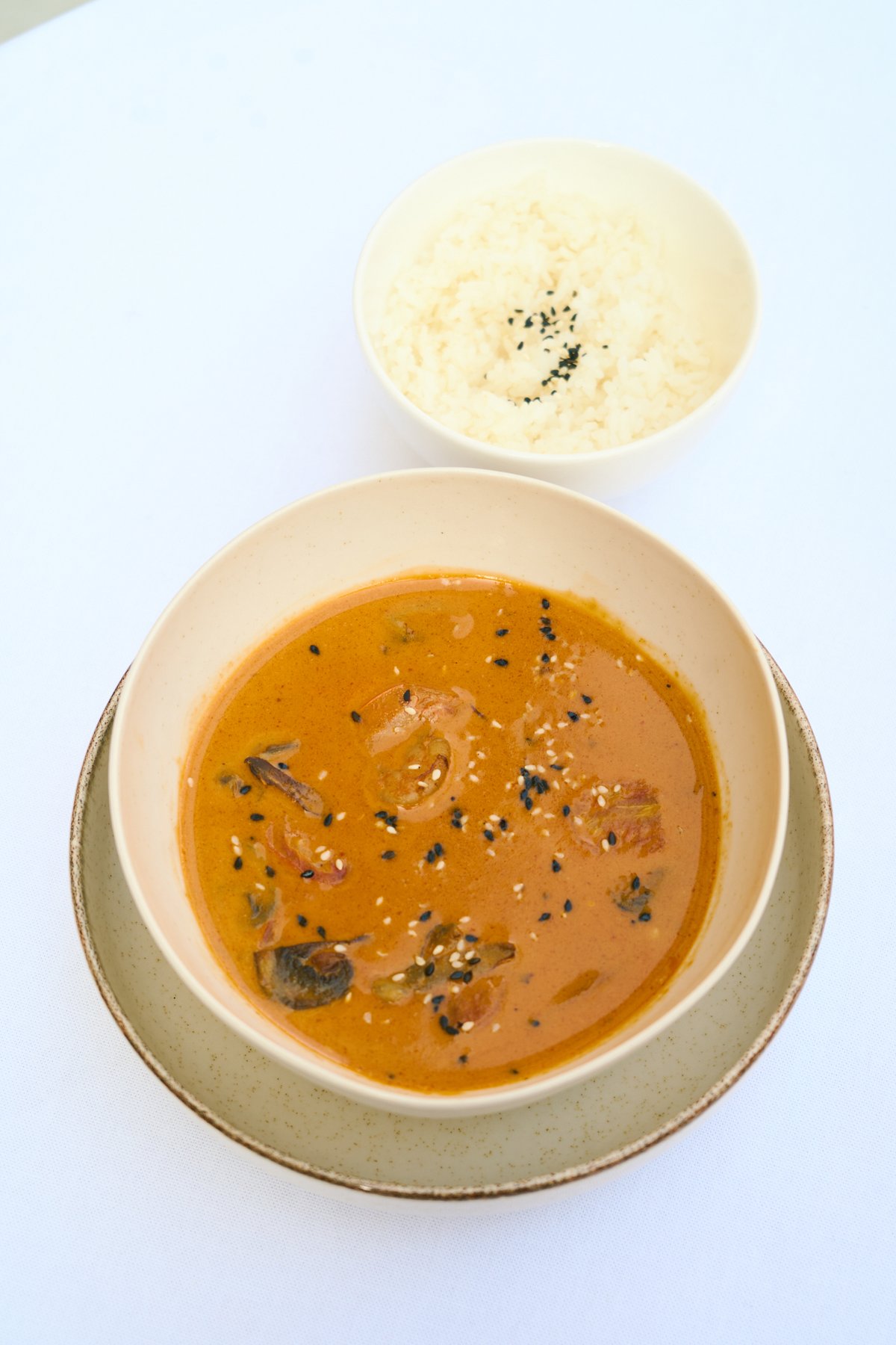 (рис, молоко кокосовое, черри, шампиньоны, листья нори, креветки, мидии, кальмар командорский)