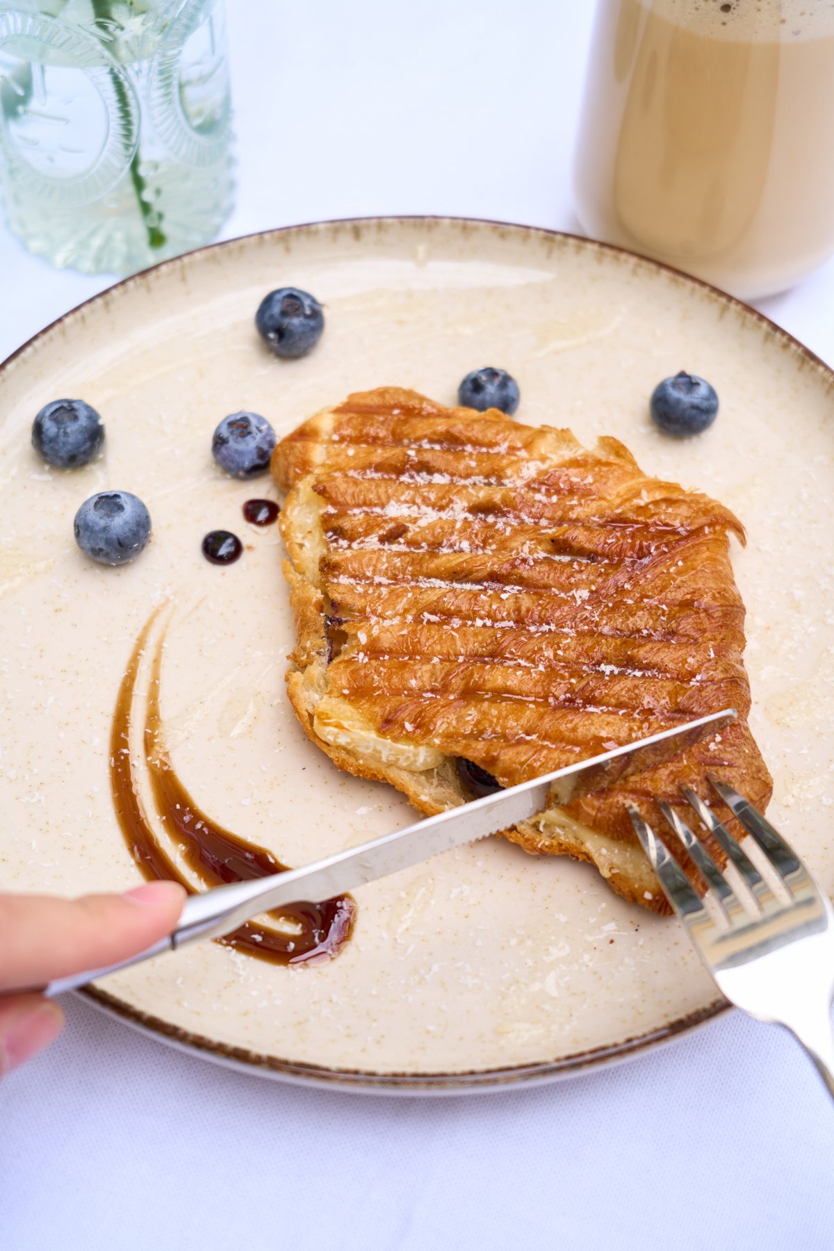Круассан тост с голубикой, сыром бри и кокосовой стружкой
