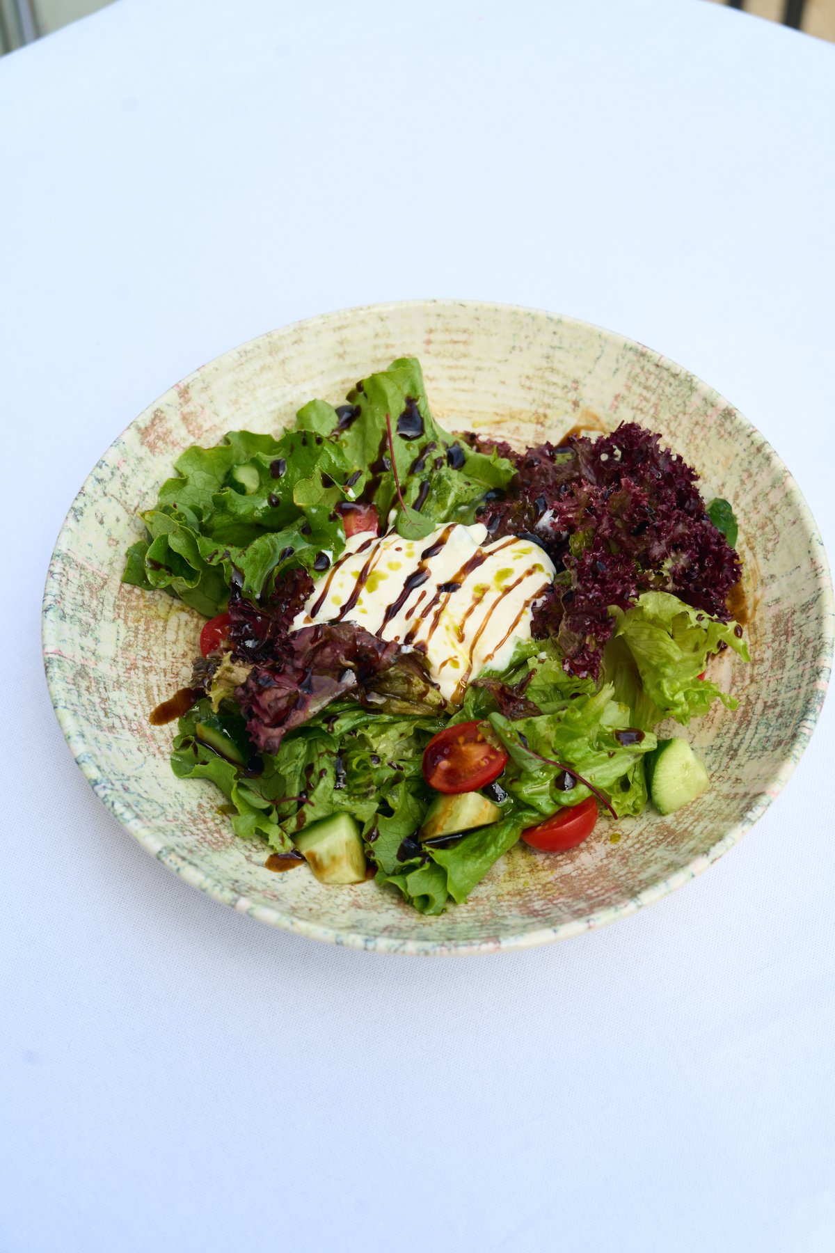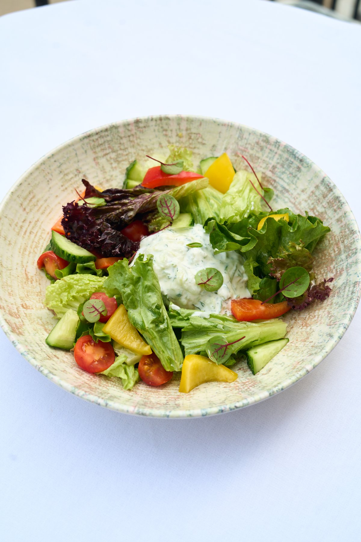 (микс салата, яйцо, черри, болгарский перец, соус дзадзики, огурцы)