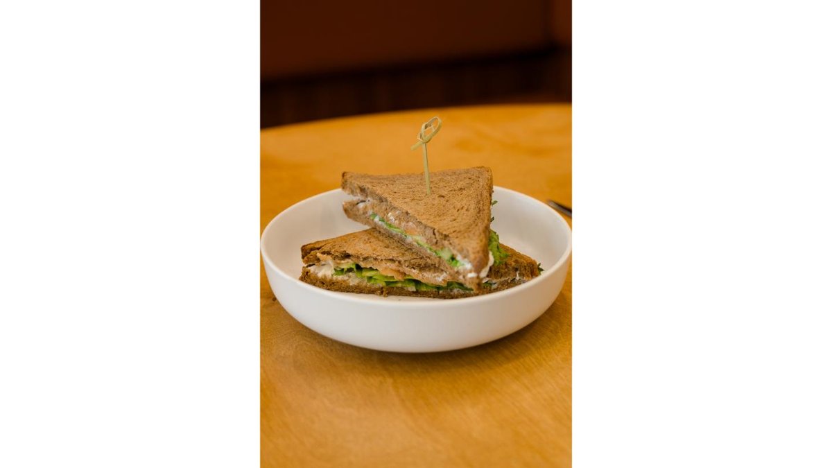Хлеб ржаной, лосось, крем чиз, огурец, лист салата, репчатый лук