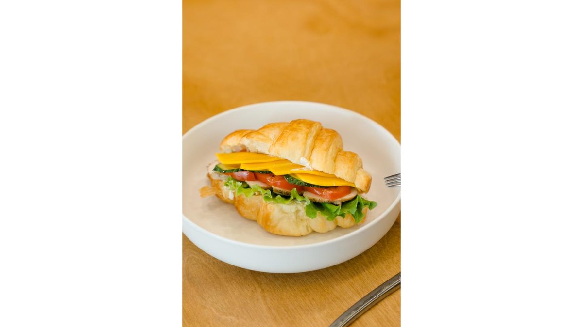 Классические круассаны, курица, крем чиз, листья салата, огурцы, сыр “чеддер”
