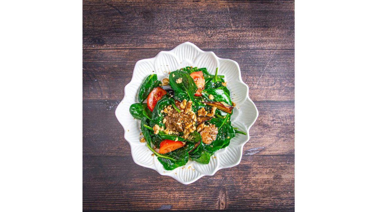 Шпинат, телятина, помидор, баклажан жареный, грецкий орех, чеснок, обок