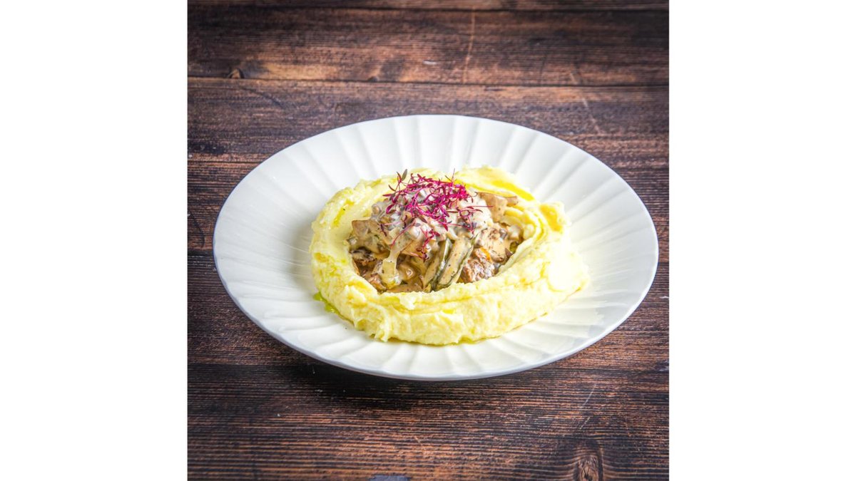Говяжье мясо, овощи, тесто, специи, томат (крупная нарезка подлива)
