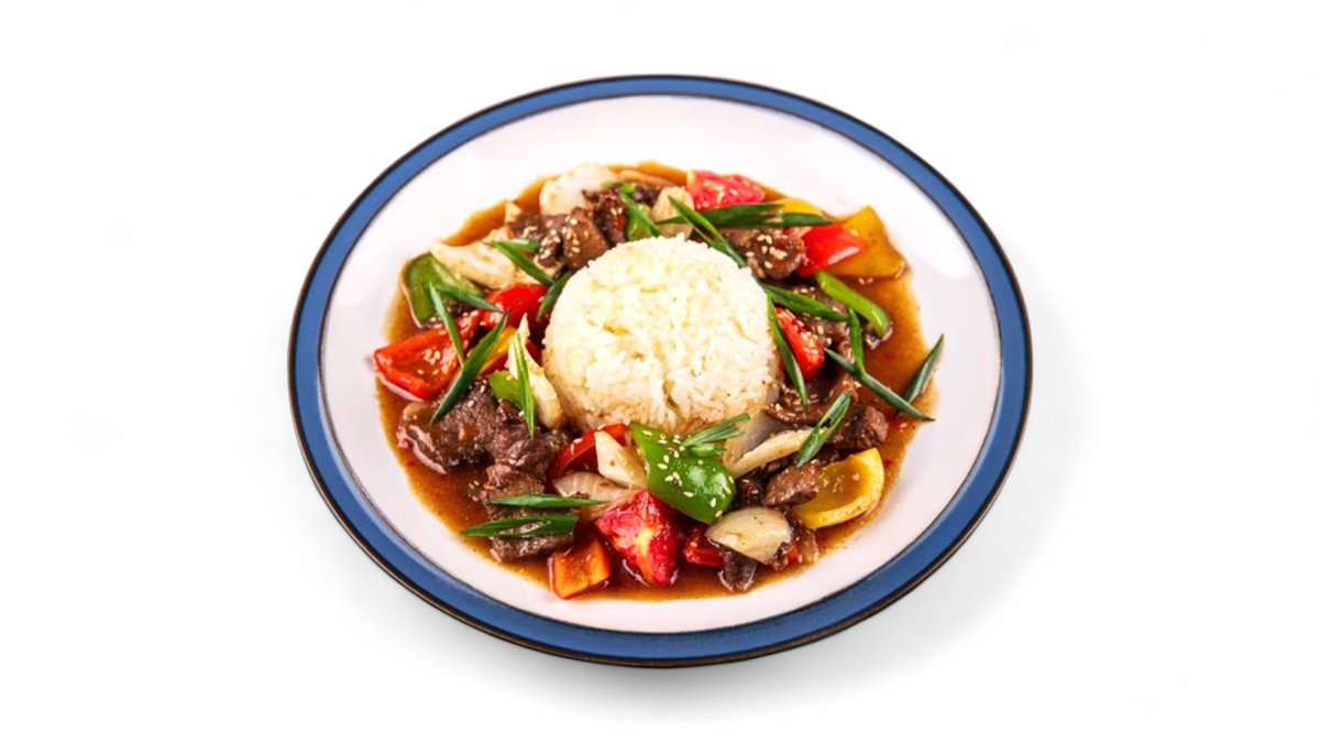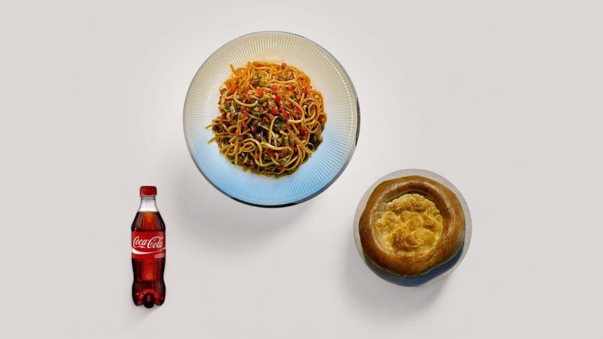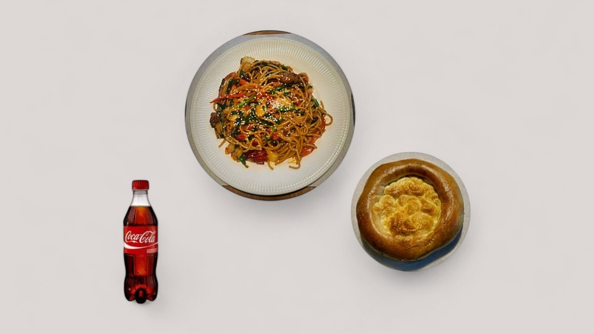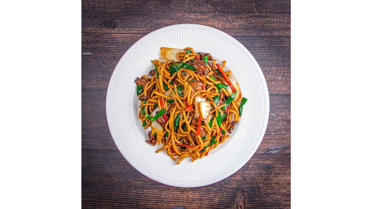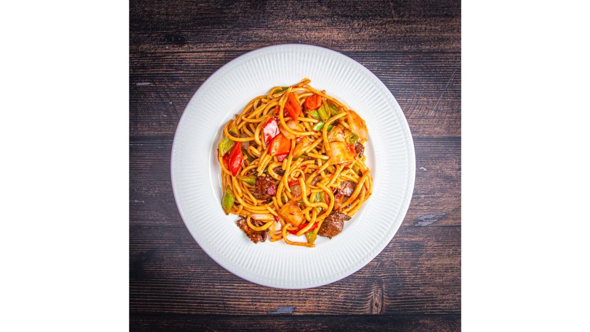Жареный лагман, Говяжье мясо, овощи, тесто, специи, томат (крупная нарезка)