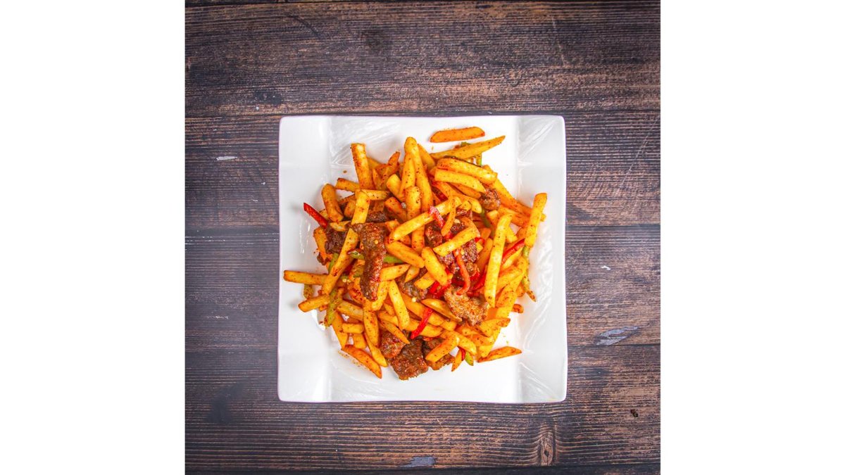 Фри, говяжье мясо, перец красный и зеленый, специи