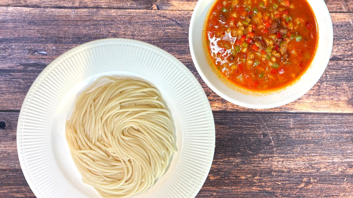 крупно нарезанное говядины,перец красный,перец зеленый,сельдерей,пекинская капуста,тесто лагманное,омлет