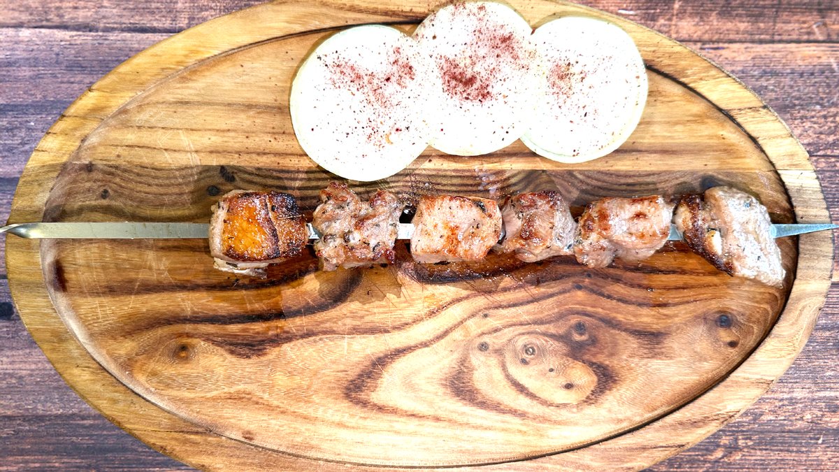 Мякоть баранины, специи, мясная трава, помидор, минеральная вода 160 гр