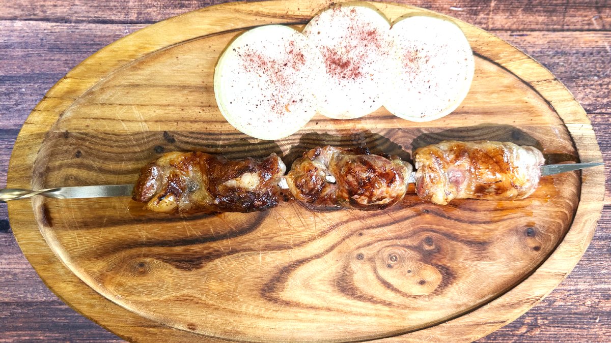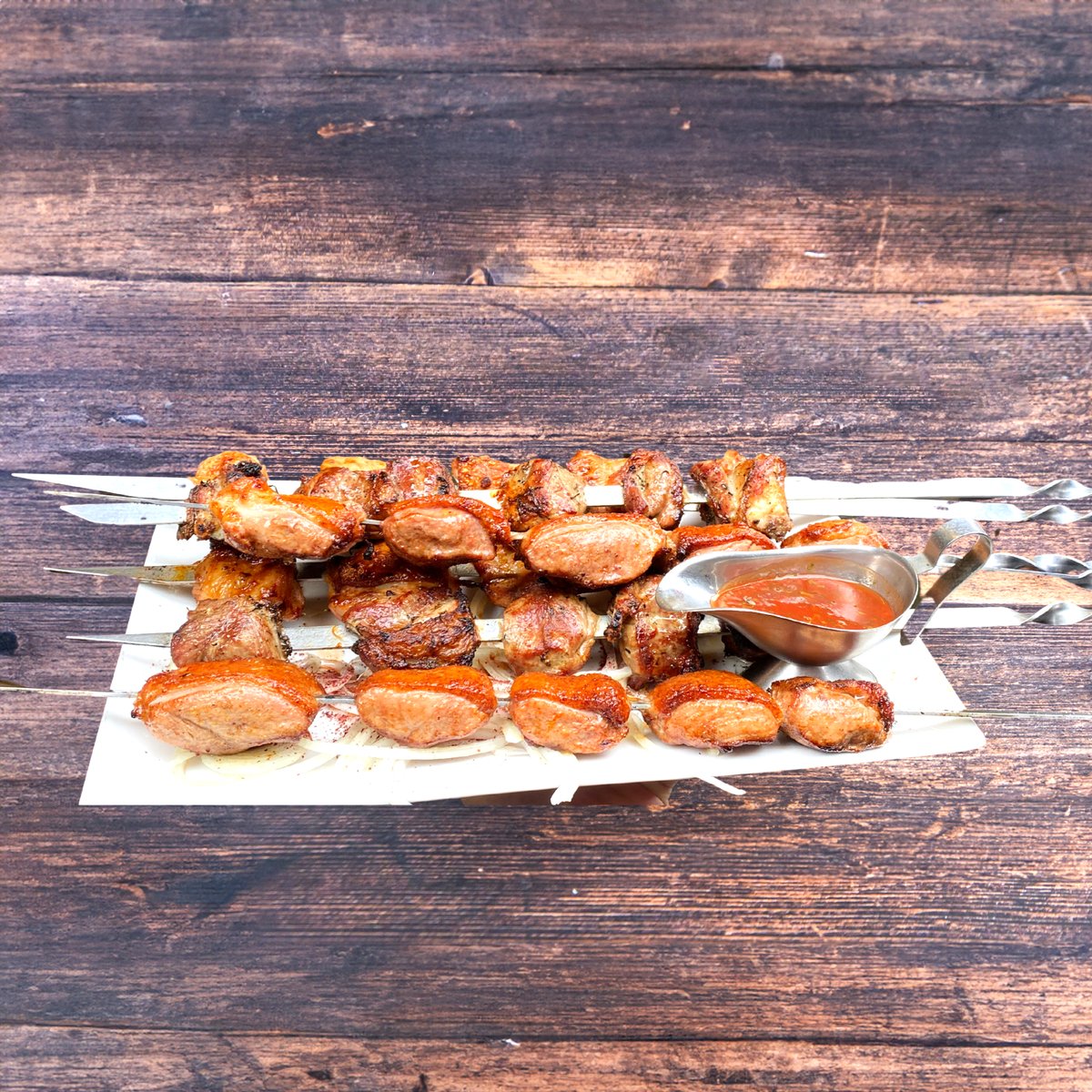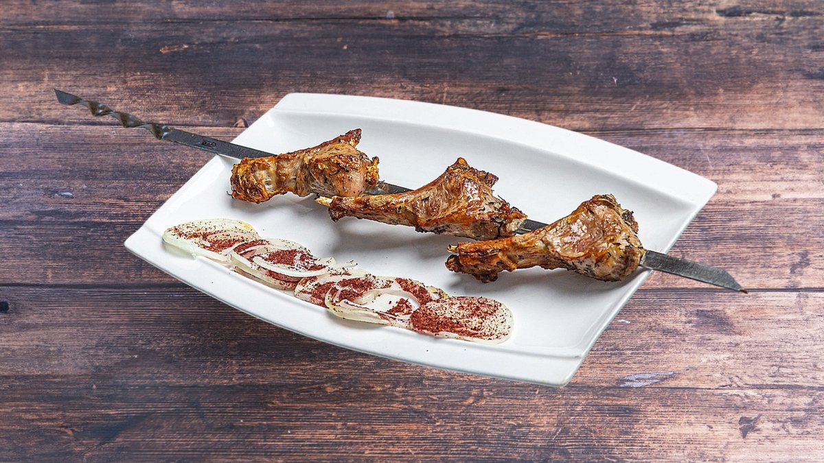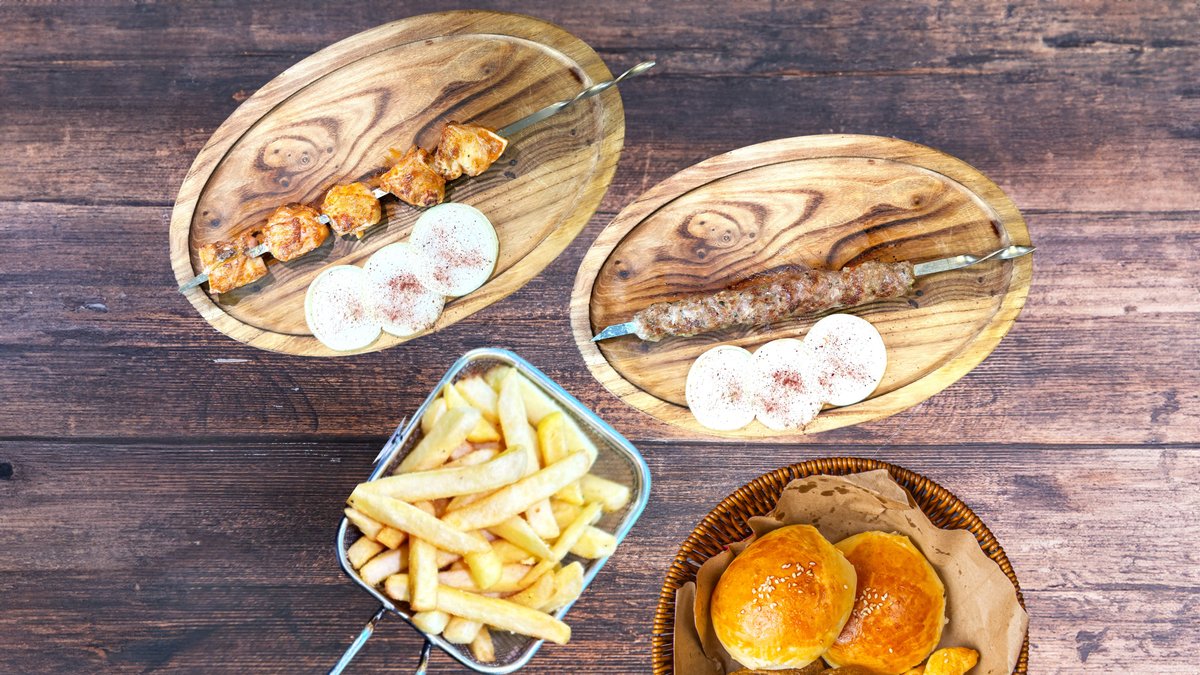 Люля кебаб из баранины, Окорочка шашлык, Фри, Лепешка