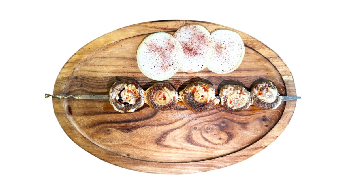 Бараньи почки, специи, мясная трава, помидор, минеральная вода