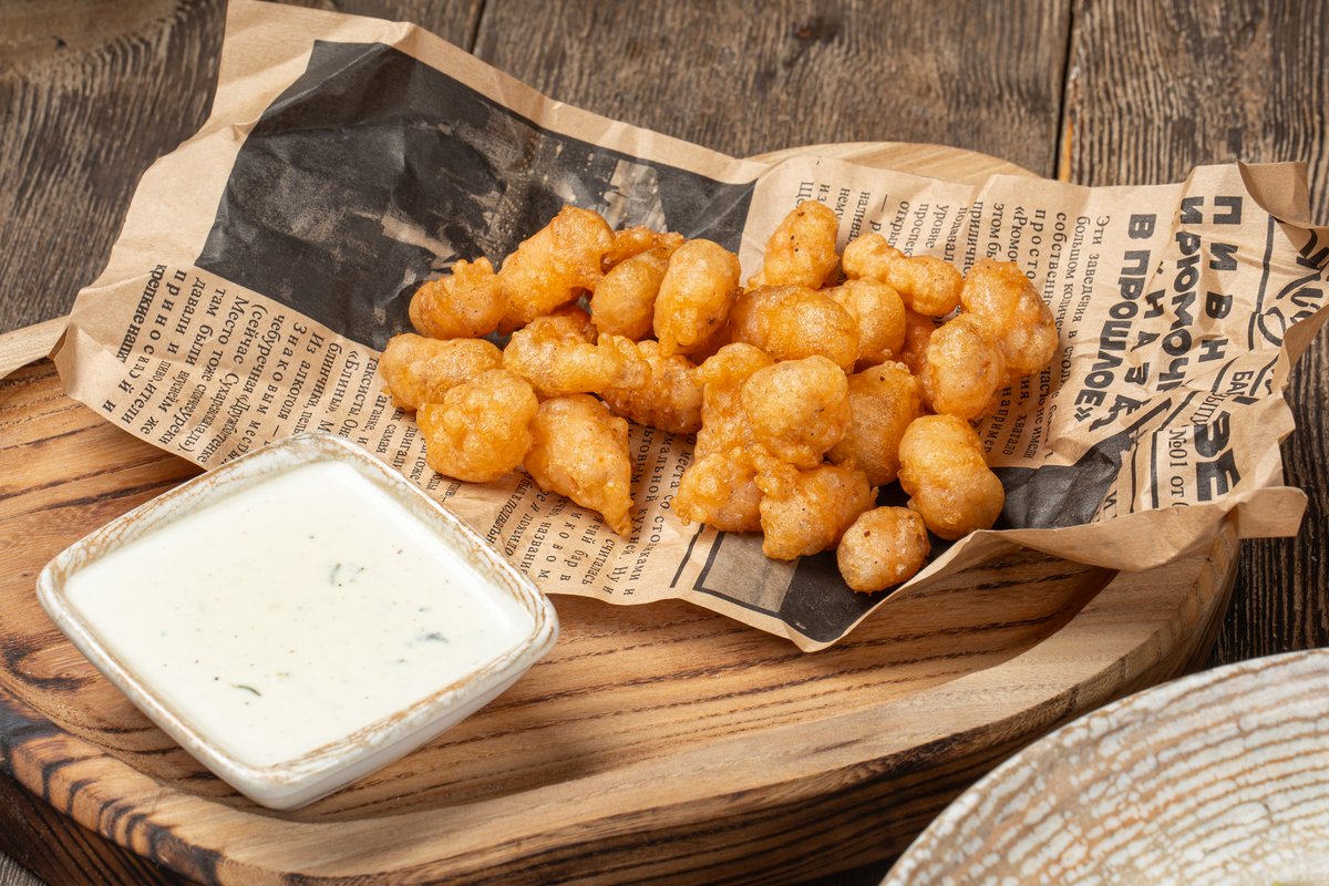 Попкорн из тигровых креветок с соусом Блю Чиз