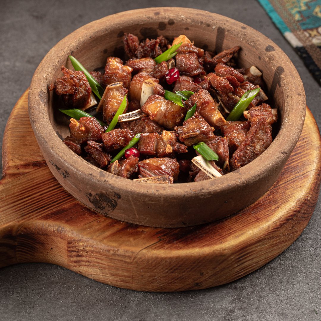 Ребрышки молодого барашка , обжаренные с луком и восточными специями