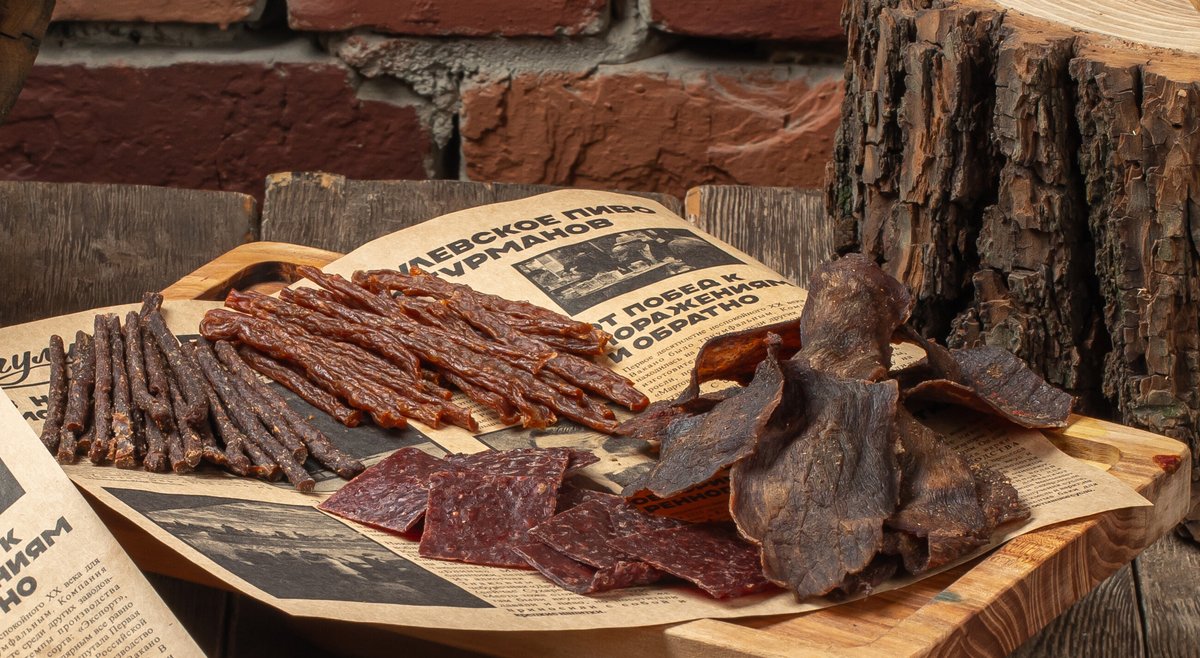 Мясные палочки из курицы и говядины, мясные чипсы из говядины и оленины собственного производства