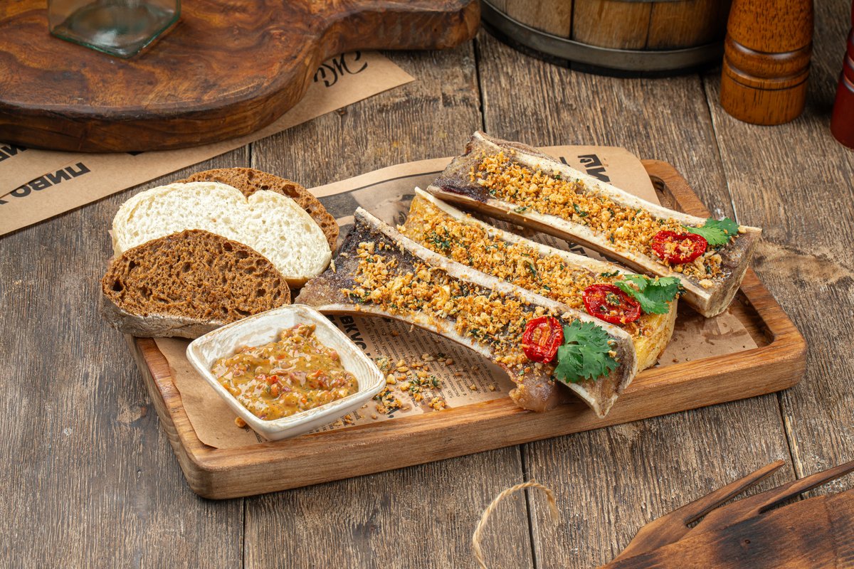 Запеченные мозговые косточки с чимичури и хрустящим хлебом