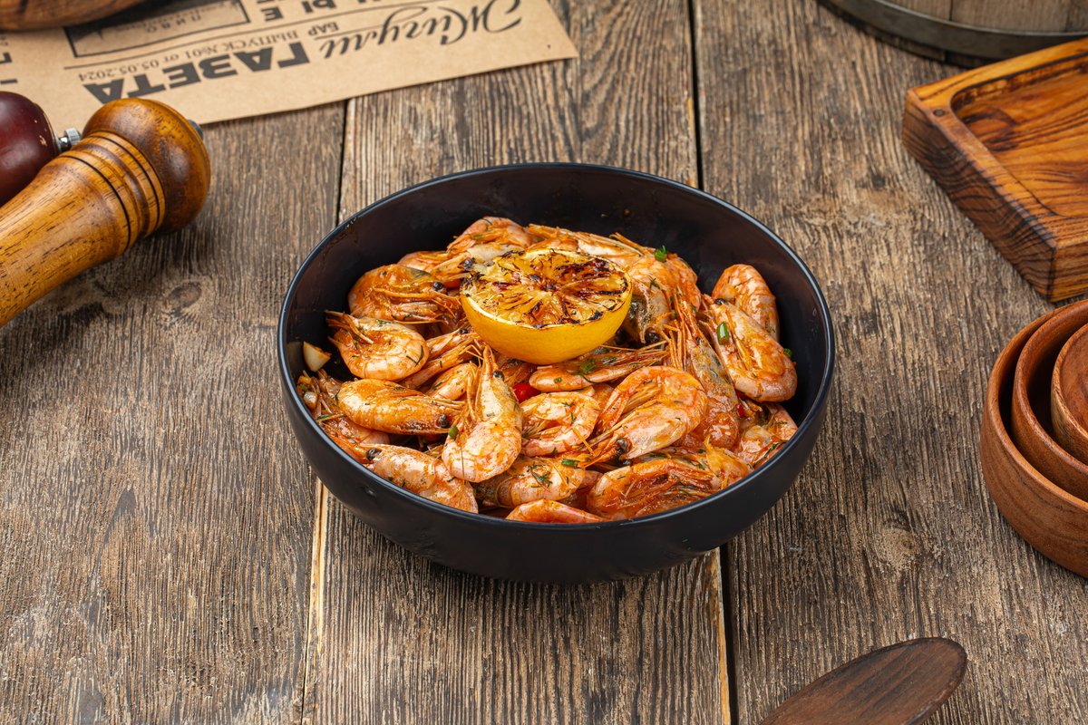 Креветки к пиву жареные с чесноком и чили перцем