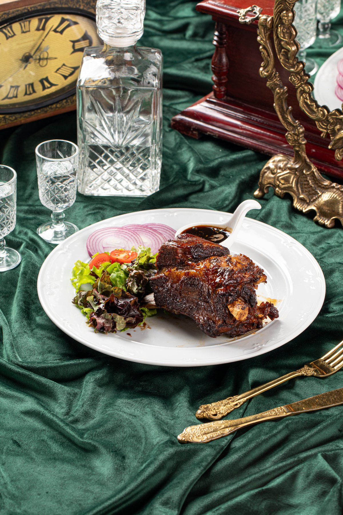 -3 ЛИТРА ПИВА В ПОДАРОК -Антрекот из баранины фаршированный сладким перцем -Бейби картофель, запеченный с чили перцем , розмарином и чесноком -Репчатый лук -Пульпеты из баранины -Маринованные огурцы
