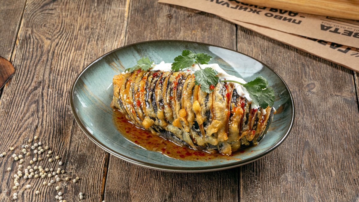 Салат с хрустящими баклажанами
