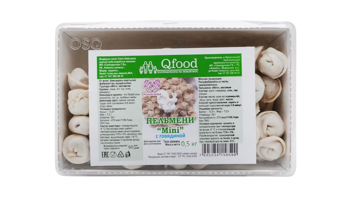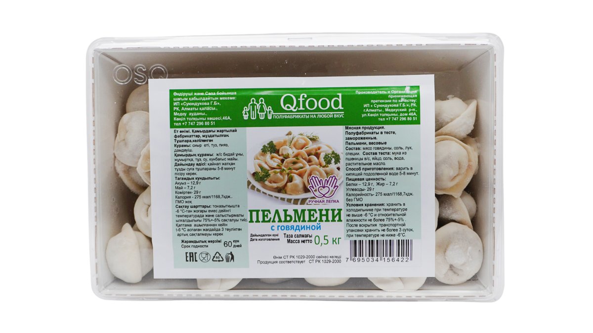 Пельмени с говядиной 500г qfood