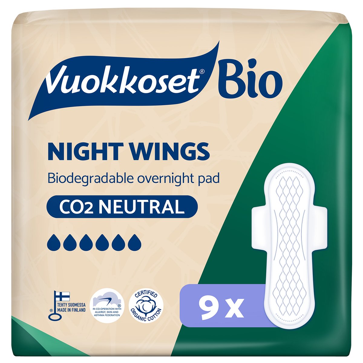 Прокладки Vuokkoset БИО ночные с крылышками 9 шт
