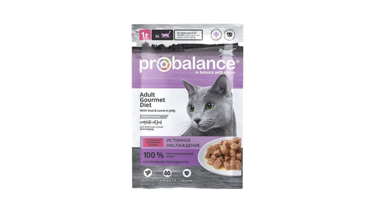 ProBalance Gourmet пауч для кошек c телятиной и ягненком в желе, 85 г