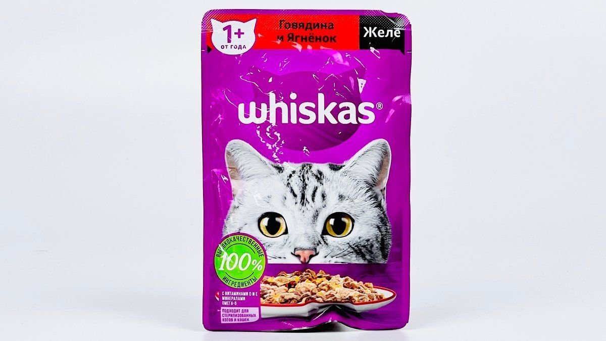 Корм для кошек от 1+ года Whiskas говядина и ягненок желе, 75 г